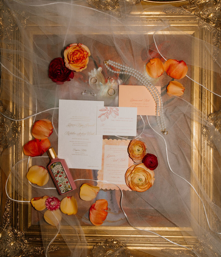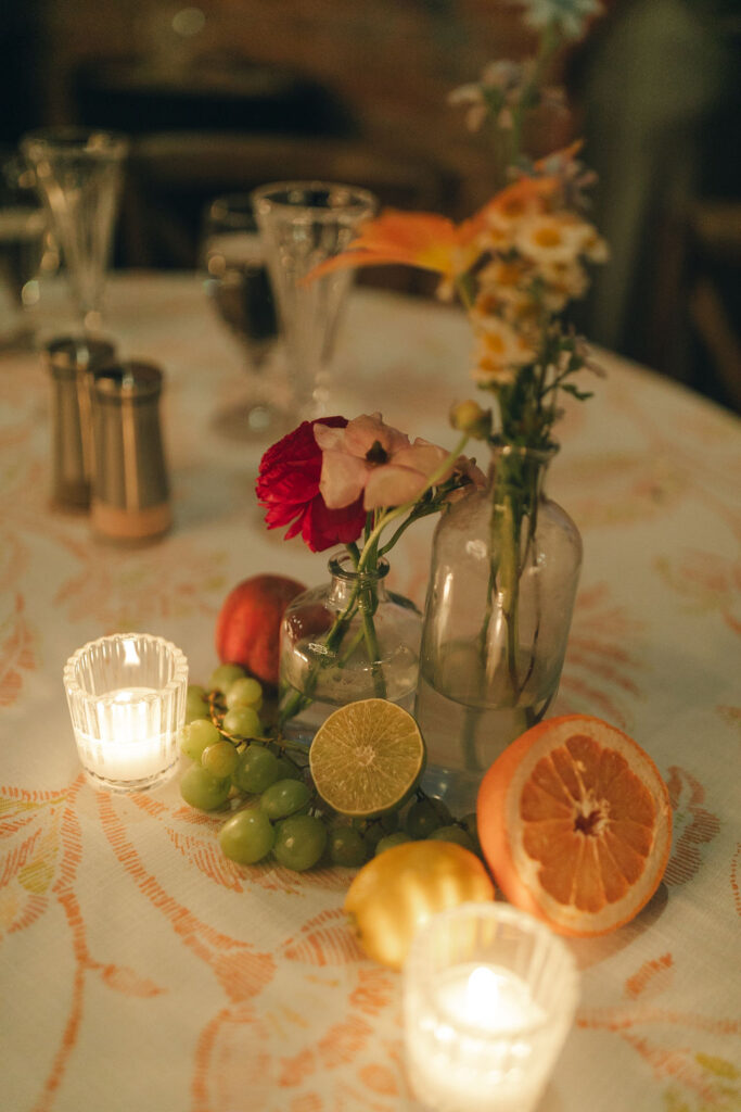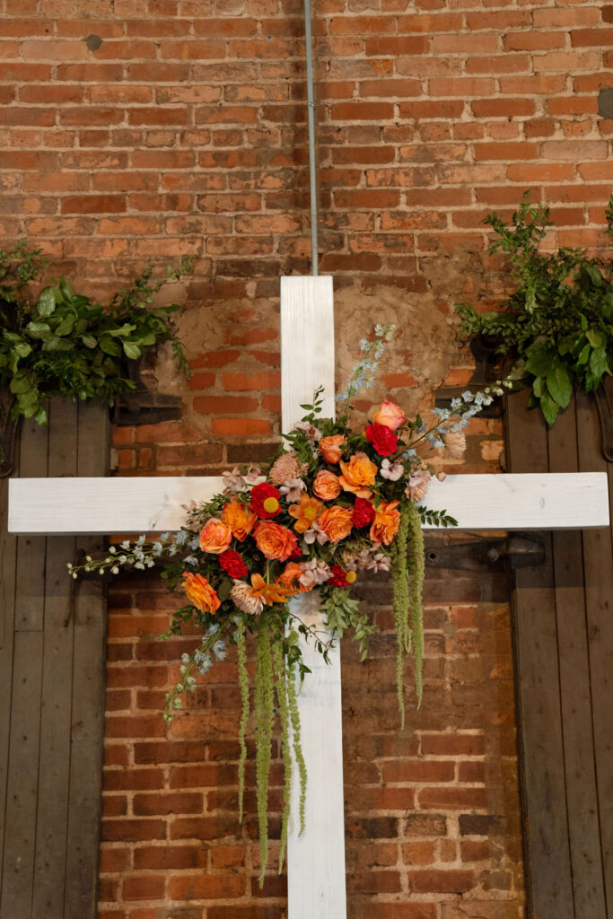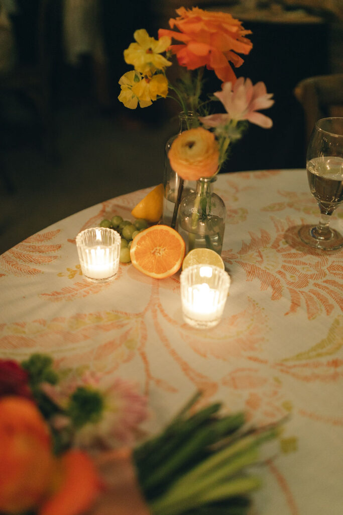 Diana and Nick wanted their wedding to feel colorful, citrusy, and whimsical, so we built their floral story around a palette of vibrant oranges, yellows, pinks, whites, and touches of blue. To give the palette depth, we softened the tones in certain areas, allowing each hue to shine without overpowering the others.