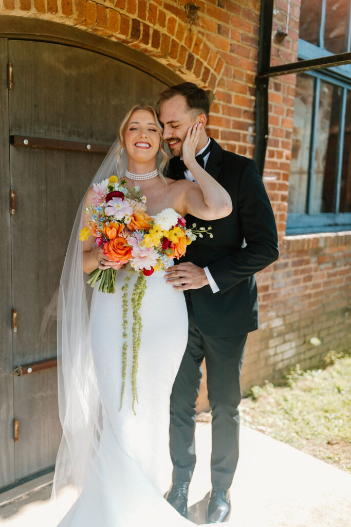 We always love flowering an Empire Mills wedding, but Diana and Nick’s summer celebration brought something entirely their own to the space: a bright, citrusy palette bursting with color, texture, and warmth. From the moment we arrived in Madison, Georgia, we knew this would be one of those weddings that just radiated happiness.