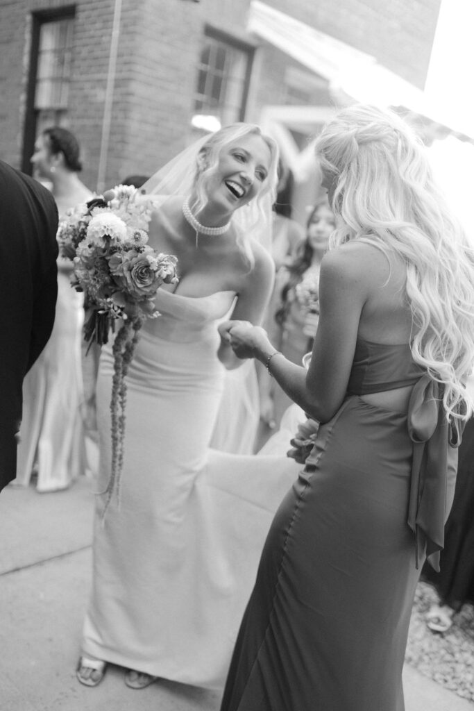 Diana’s wedding day look was beautifully modern: a clean, white gown that felt timeless yet fresh. Her bridesmaids surrounded her in a stunning array of silk dresses, each in a different warm tone, from yellow to pink to orange.
