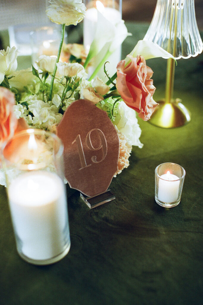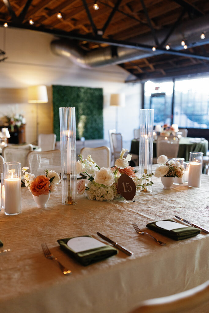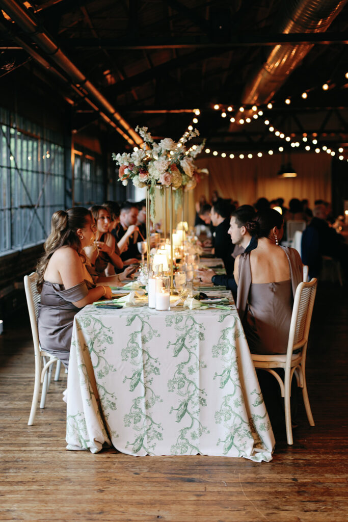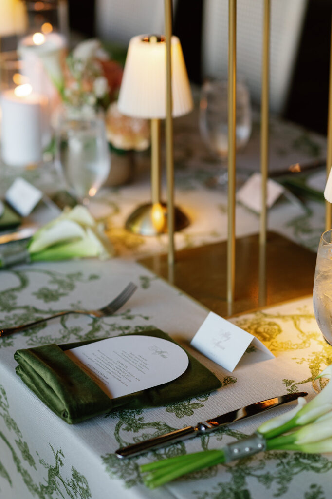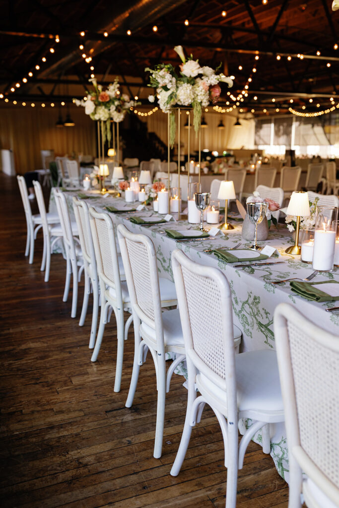 Candles in every form — tapers, pillars, and votives — layered in with patterned linens and warm lighting to add depth and intimacy. We’re especially grateful to Jackson & June Events for their thoughtful design direction, including the choice to upgrade to specialty linens that made a huge impact on the overall look.