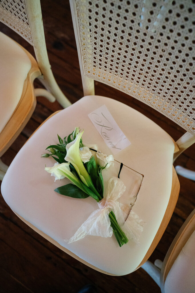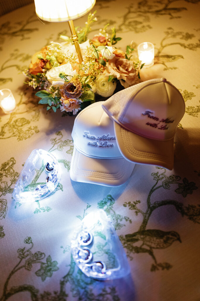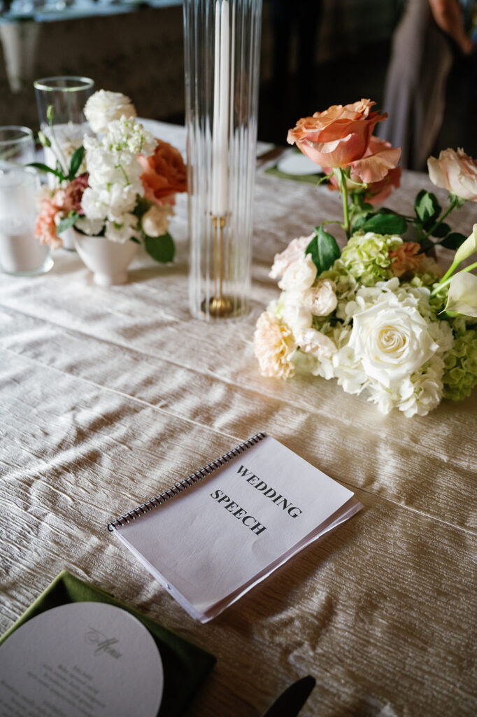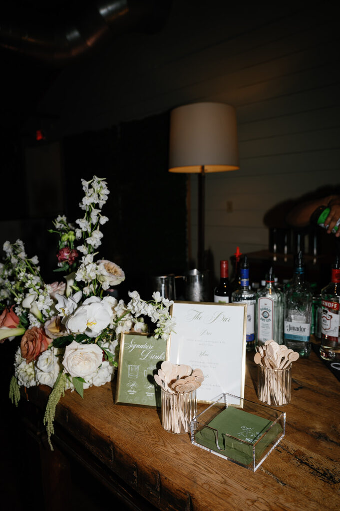 Caroline and Jake didn’t just create a beautiful environment — they filled it with meaning. Custom cocktail napkins were printed with handwritten love notes and a drawing of their beloved dog. A surprise saxophonist joined the DJ during cocktail hour and dancing, adding a live music element that kept the energy high and the dance floor packed.